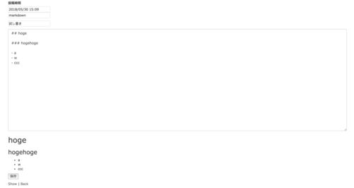 markdown 機能実装 実装工程 markdown 参考 リアルタイムプレビュー 参考 toc(目次)機能 参考 markdown 機能実装 記事を書くのにいちいちHTMLで書くのは面倒。 だから使い慣れているmarkdownを導入することにした。 今回欲しかった機能は以下の通り markdo…